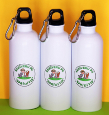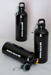500 ml, ar karabīnes klipsi piestiprināšanai, piemērota tikai aukstam ūdenim, spīdīga apdare, izgatavota no nerūsējošā tērauda. Uz melnajām pudelēm balta apdruka, uz baltajām krāsaina, maksimālais laukums 5x9 cm. Cenas ar PVN par vienu pudeli ar apdruku atkarā no pasūtītā daudzuma:
