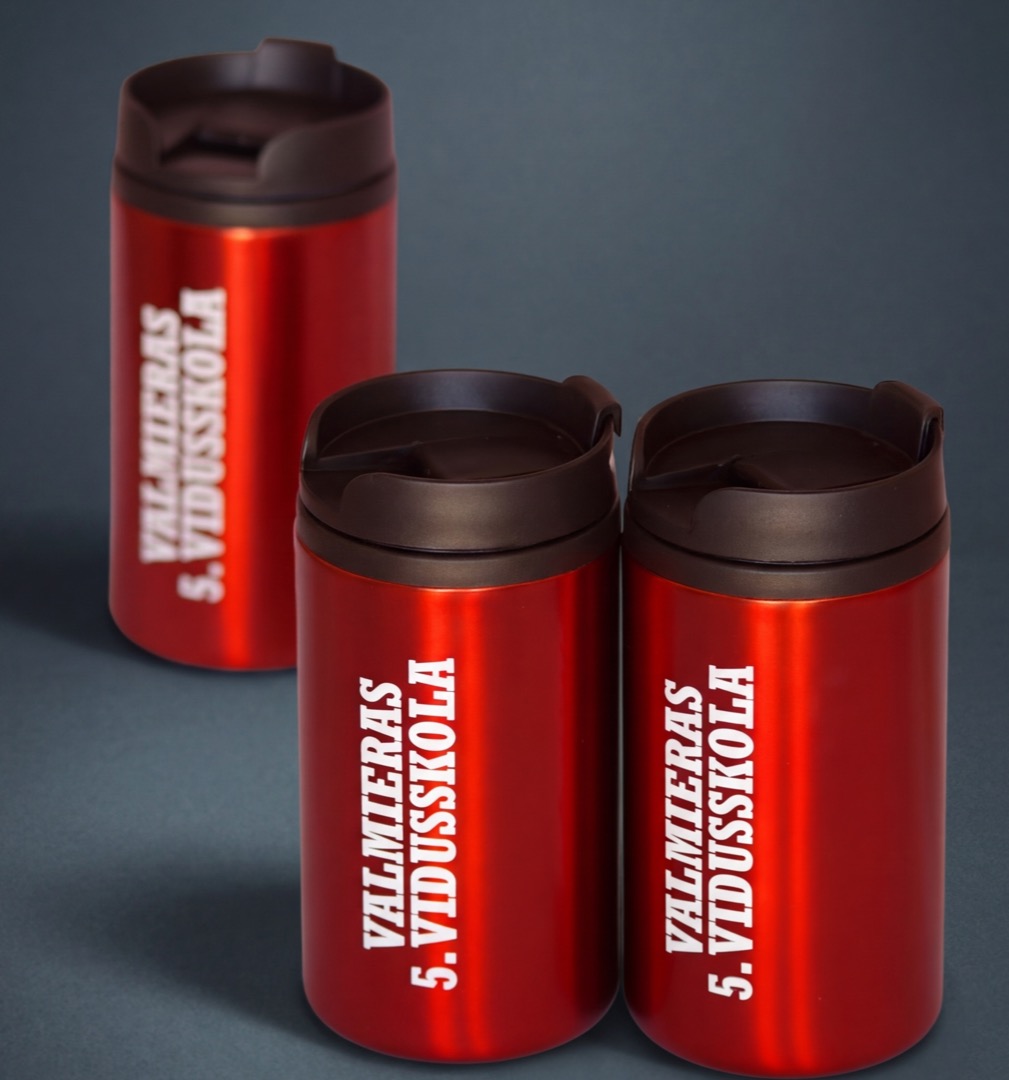 300 ml, dubultsienu, nerūsējošā tērauda ārpuse, hermētiska, neslīdoša apakša, uztur dzērienus karstus līdz pat 4 stundām. Uz sarkanajām krūzēm balta apdruka, uz baltajām krāsaina, maksimālais apdrukas laukums 5x9 cm. Cenas ar PVN par vienu termokrūzi ar apdruku atkarā no pasūtītā daudzuma: