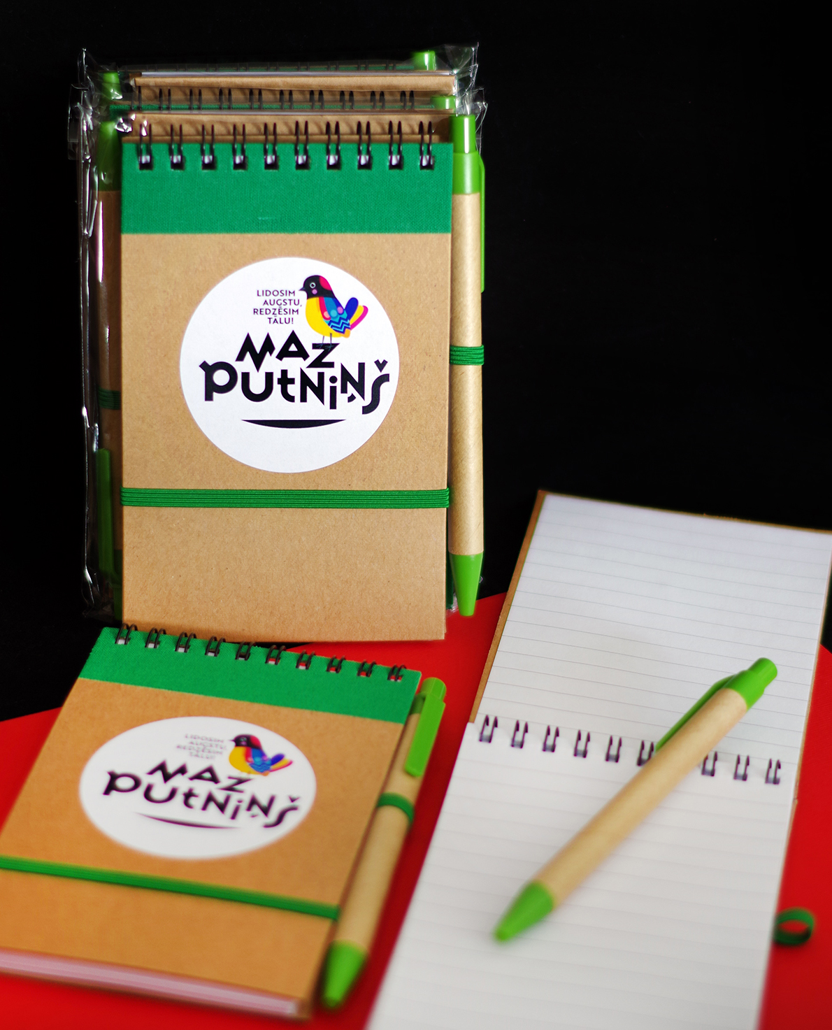 ■ Klade izmērā 13,7x18 cm ar 60 līniju lapām un vākiem no pārstrādātā kartona, kam piestiprināta pildspalva. Katra klade iesaiņota caurspīdīgā maisiņā. Jums drukāta uzlīme 60mm diametrā. Cenas ar PVN par vienu kladi atkarā no pasūtītā daudzuma: